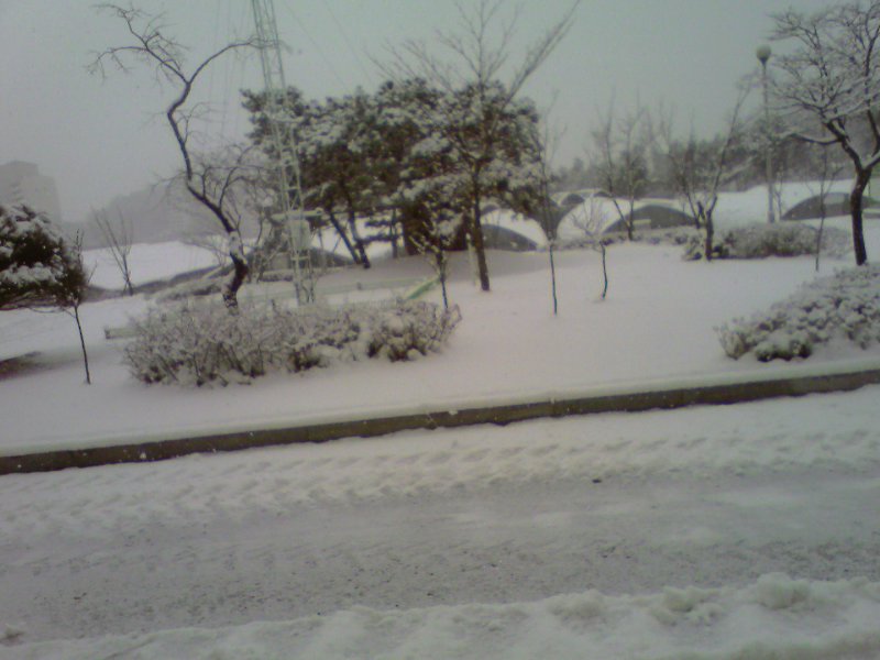 와~~정말로 눈이네요 어제 여기도 영하로 내려간다고 하길래 기대를 했는데 그다지 춥지는 않아요 정말 딴 세상에 와있는것 같애요 지금도 눈이 오나요??