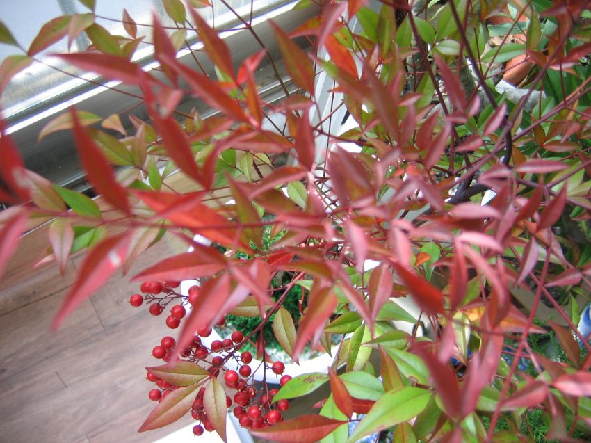 남천이 단풍이 곱게 드네요.. 울 사무실에 있는 커다란 남천은 해를 못봐서 열매도 안열고... 물도 안들고..아주 불쌍해서 죽겠어요... 새해 복 많이 받으셔요 ^^